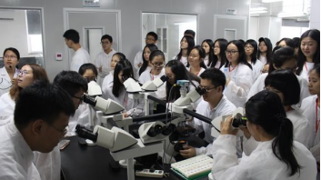 随后医检专业员工分组参观了云康展览大厅、远程病理实验室、细菌培养实验室、分子病理实验室、组织病理实验室,在参观过程中,工作人员积极耐心地为同学们讲解实验室中器材的使用、检验标本的器材使用流程步骤等等。